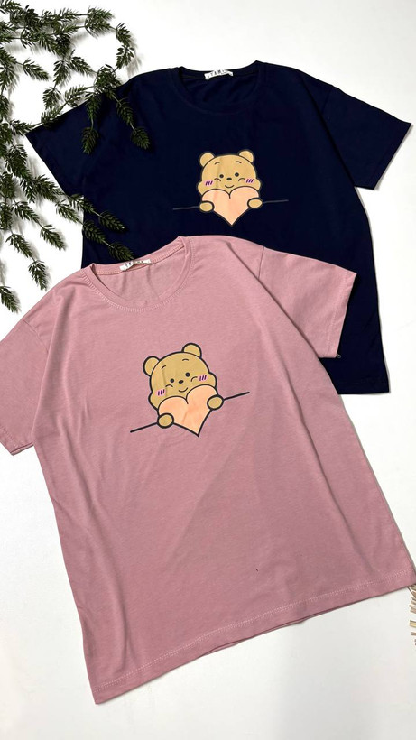 تیشرت زنانه سایز بزرگ فری تا ۴۸ طرح پاندای قلبی