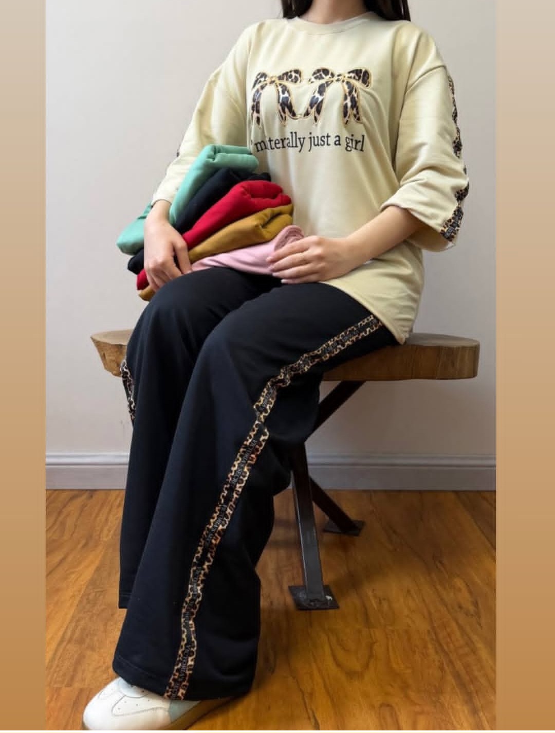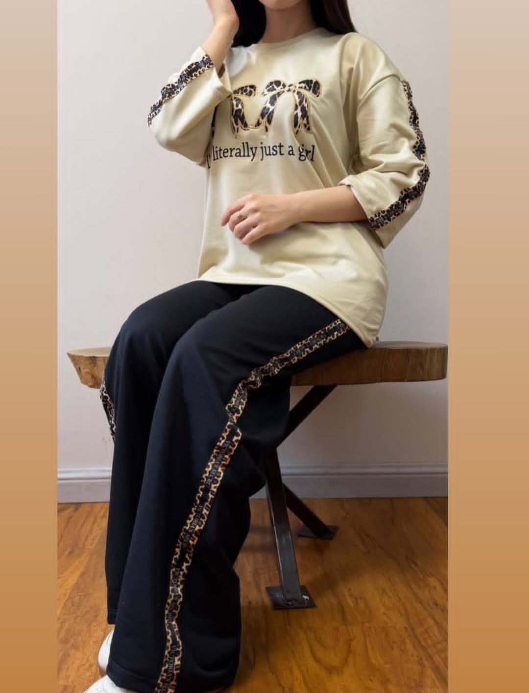 مدل پلنگی دور سینه بدون کشسانی 114 اندازه استین از یقه 46 قد تیشرت 62 دور کمر 116 قد شلوار 102 عرض دمپا 25 دور ران 58 دور کمر بدون کشسانی 68 دور کمر با کشسانی 108